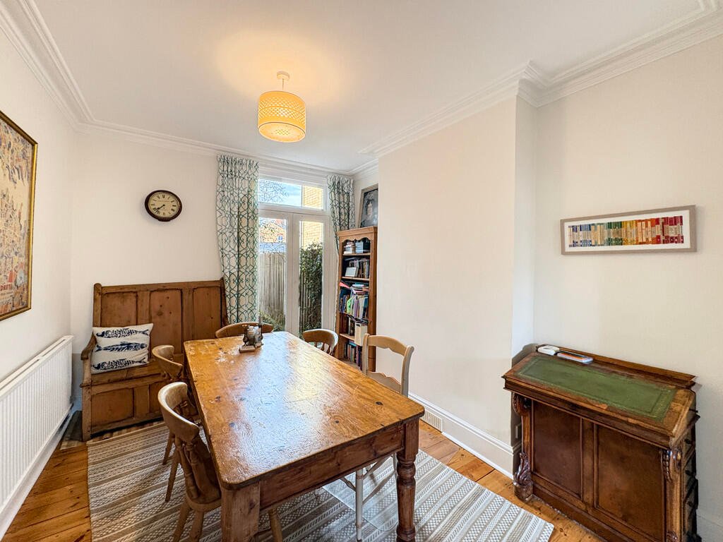 From the hallway, you step into the main reception room located at the front of the house. This well-proportioned living space benefits from high ceilings and a large front-facing window, allowing excellent natural light. There is ample room for sofas and furniture, creating a comfortable and inviting lounge area.This versatile space can be used