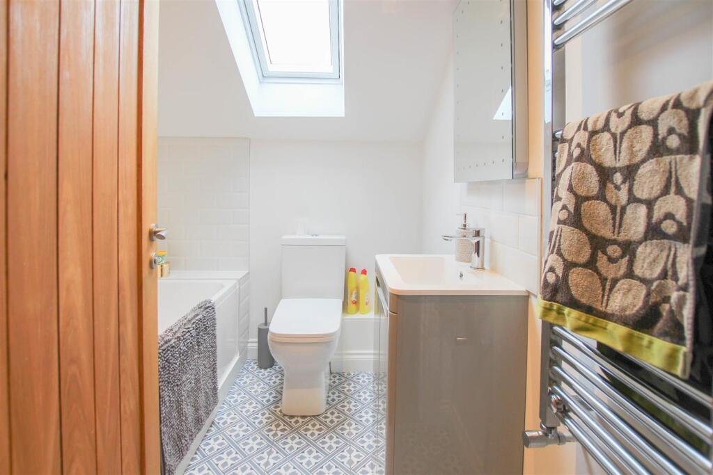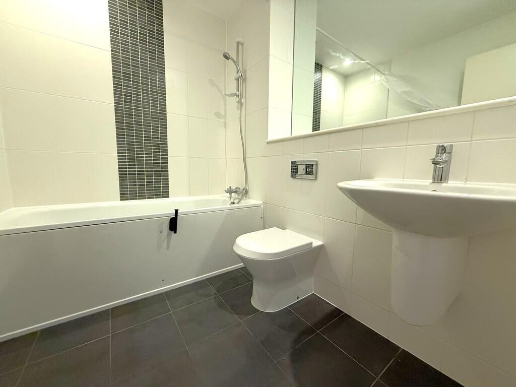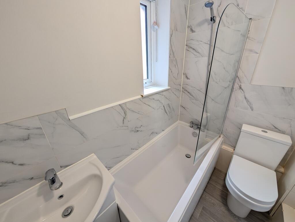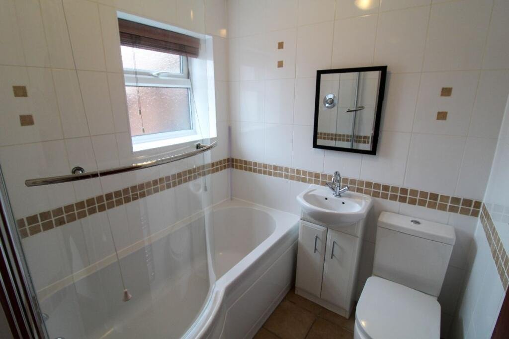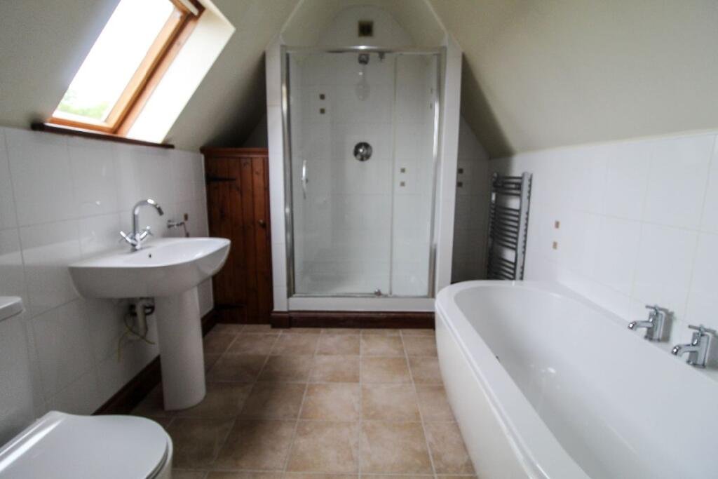 Bathroom Bath with shower over, low level w/c, wash hand basin.