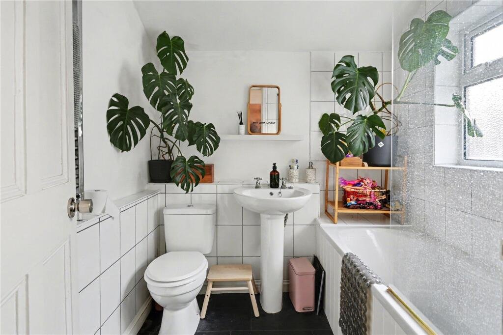 The ground floor comprises a welcoming living room to the front, featuring attractive period details, and a separate dining room providing a versatile second reception space. To the rear, the modern fitted kitchen offers ample storage and worktop space, complemented by a separate utility room providing additional practicality and direct access to the garden. A ground floor bathroom fitted with a contemporary white suite completes