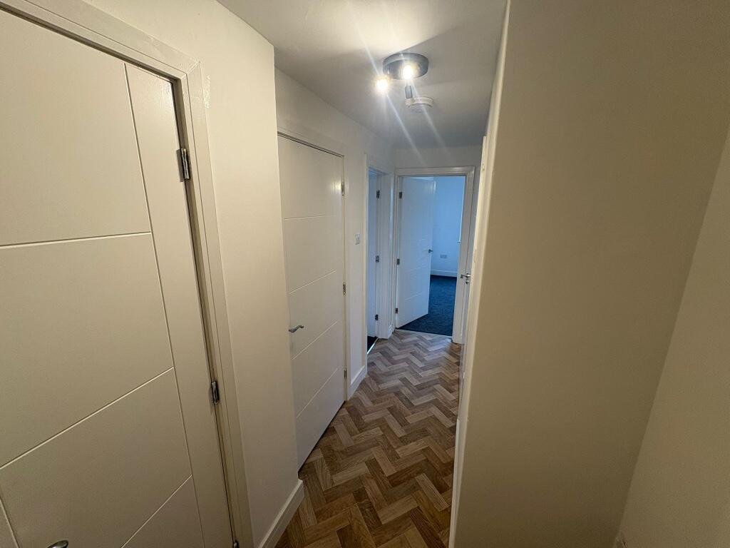 HALLWAY:- Two storage cupboards, parquet style floor, doors to:-