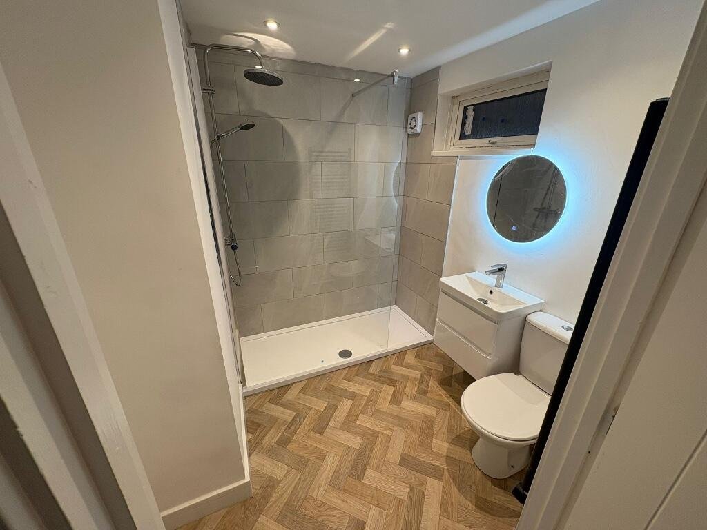 BATHROOM:- Obscured double glazed window to rear, walk in shower with screen, thermostatic bar shower,
