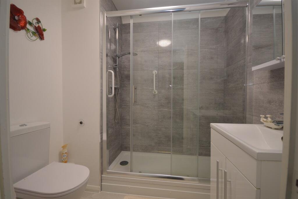 Shower Room Suite comprising low level WC, Wash hand basin, and double width shower cubicle and tiled splash backs.Residents Communal Parking