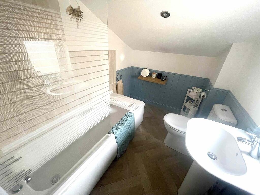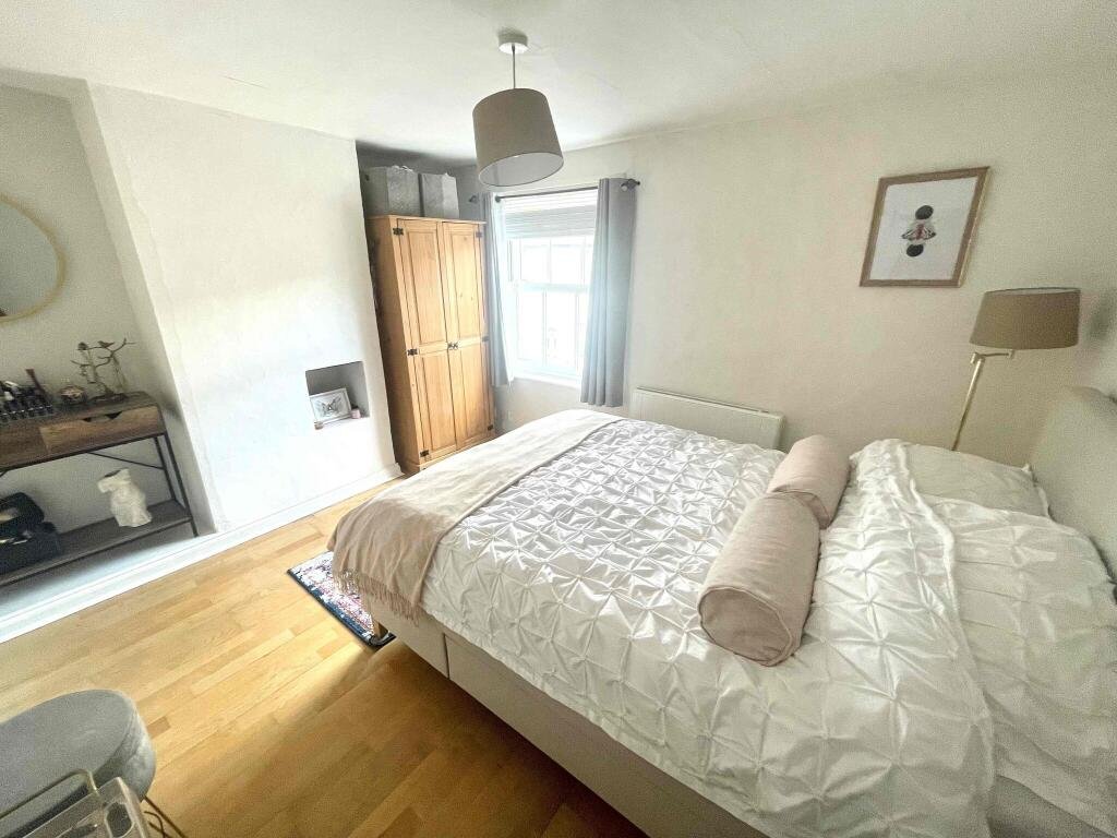 Upstairs we have the two bedrooms, both decorated neutrally with wooden flooring. The master is of a double size offering ample space for furniture. The 2nd bedroom is of a small double size and is also a walk-through room leading onto the bathroom.