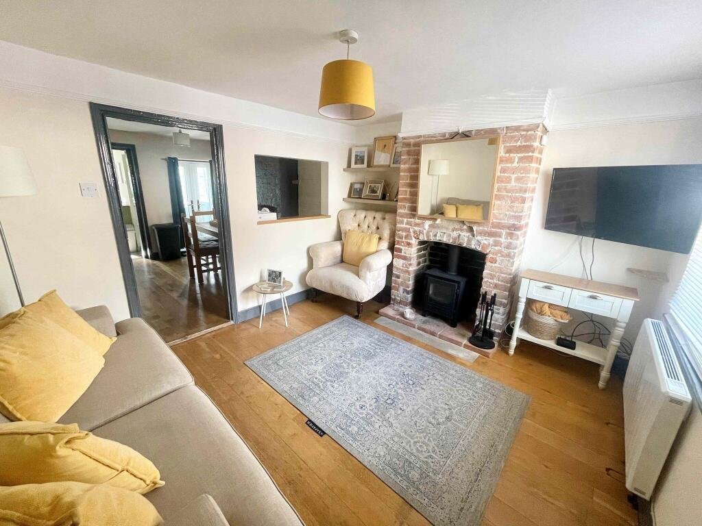 As we enter the property, we find ourselves in the light and airy lounge, styled light wooden flooring, cream walls, and an original exposed brick fireplace with wood burner to finish, this adds great character to the property!