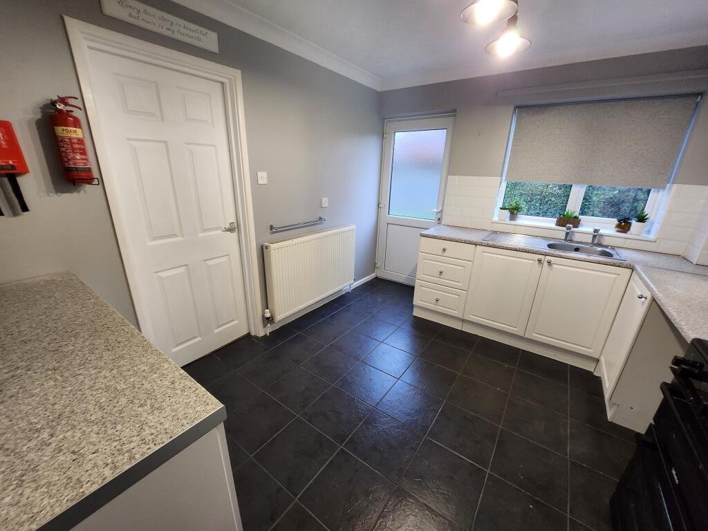 Kitchen – Plenty of cupboard space and work top. With fridge/freezer, washing machine, oven, hob, extractor fand and sink. Back door to the garden