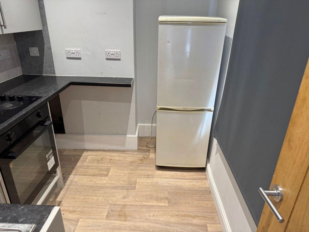 Accessed from the first floor, you’ll find a welcoming sitting room, a comfortable space for relaxation, leading through to a modern fitted kitchen. The kitchen is well-appointed with contemporary units and work surfaces, providing a practical and stylish area for daily living.