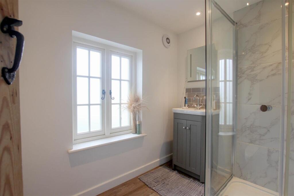 Shower Room – Contemporary suite with shower cubicle, low level W/C, wash hand basin and heated towel rail. Obscured window overlooking the front aspect.