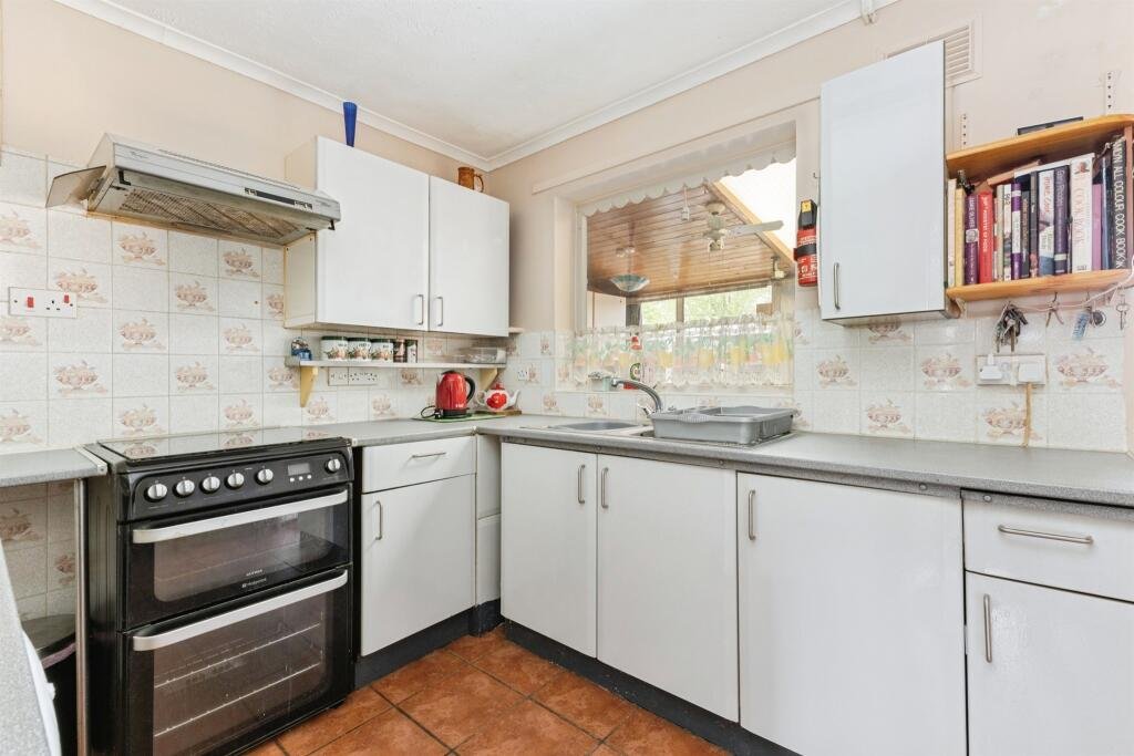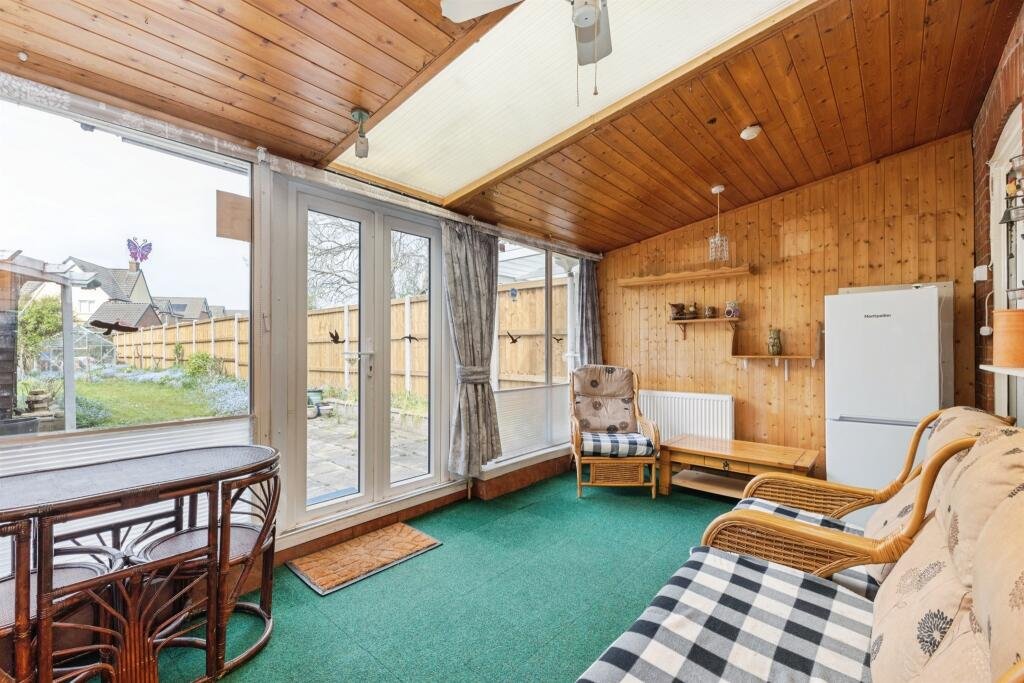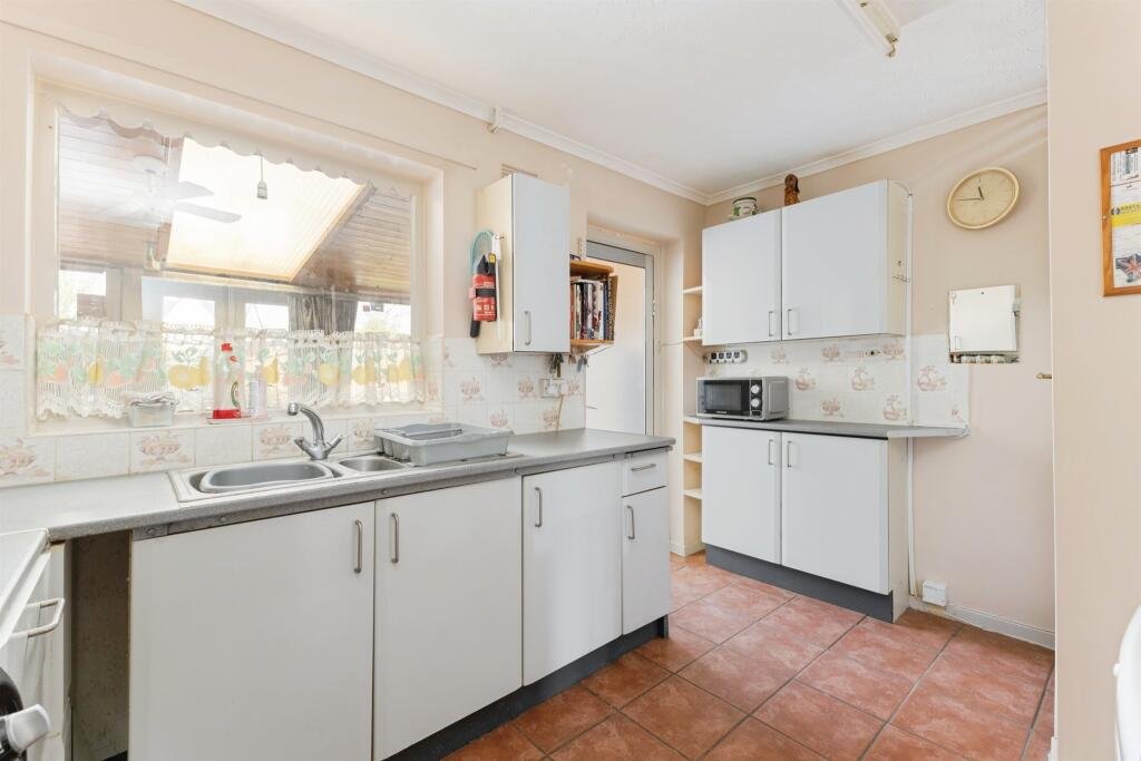 Conservatory 16′ 8″ x 9′ 4″ ( 5.08m x 2.84m )two radiators, Patio doors to rear, door to Kitchen, door to side entrance, WC., storage units plumbing and space for