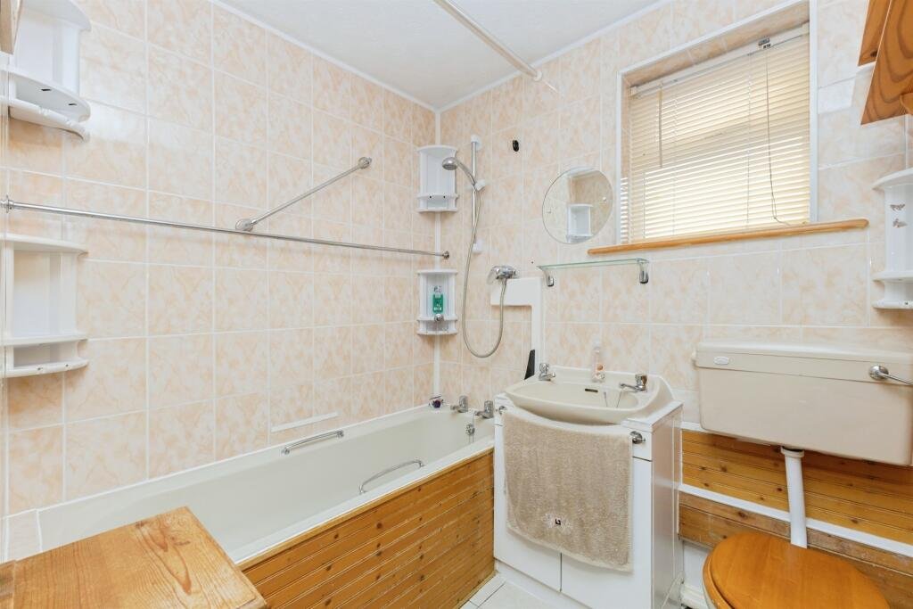 Family Bathroom Three piece suite, comprising of Bath with over bath shower, WC, hand wash basin, double glazed window to side