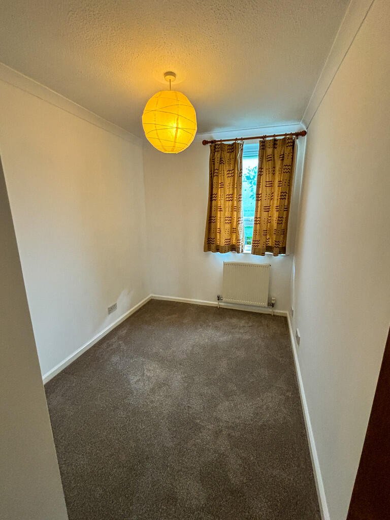 BEDROOM 2 A single bedroom with carpet, window with curtains, and radiator. Â