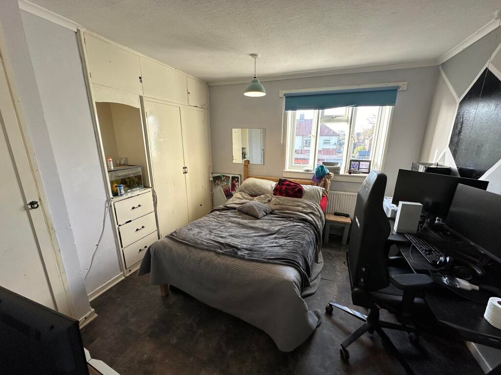 Bedroom Two (double)Carpeted flooring, window to rear aspect, cupboard.