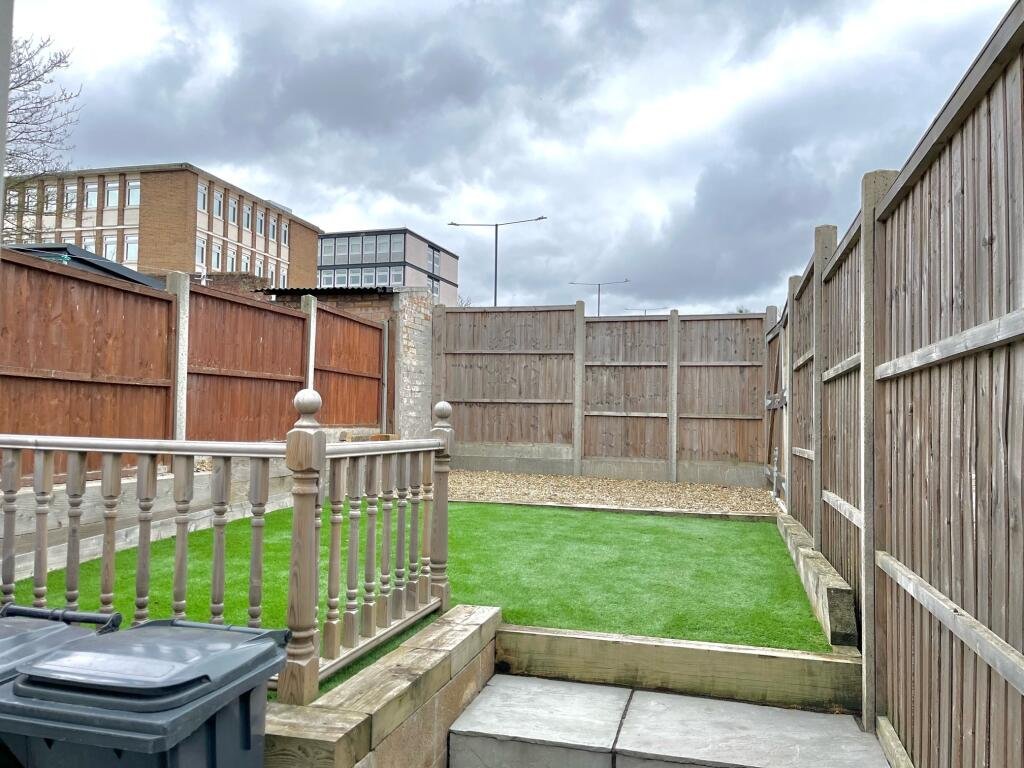 Outside:The garden is very low maintenance with paving slabs onto the artifiical grass area. At the back there are stones and gate where you can park a small car or motorcyle.