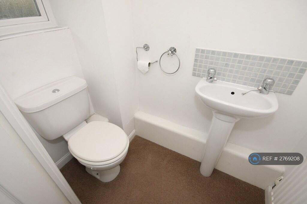 Downstairs Cloakroom Low level WC, hand wash basin, windows to front, radiator