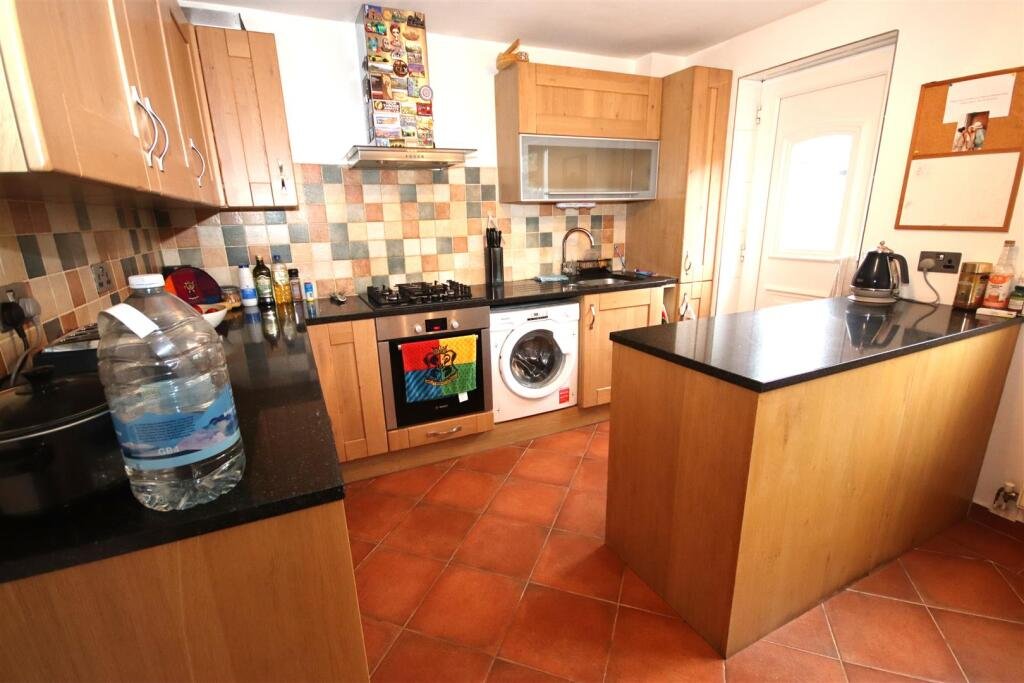 Kitchen / Dining Room – 3.9 x 3.2m (12’9″ x 10’5″) – Fitted kitchen with gas hob and electric oven, integrated fridge-freezer and washing machineTiled flooring, rear door to