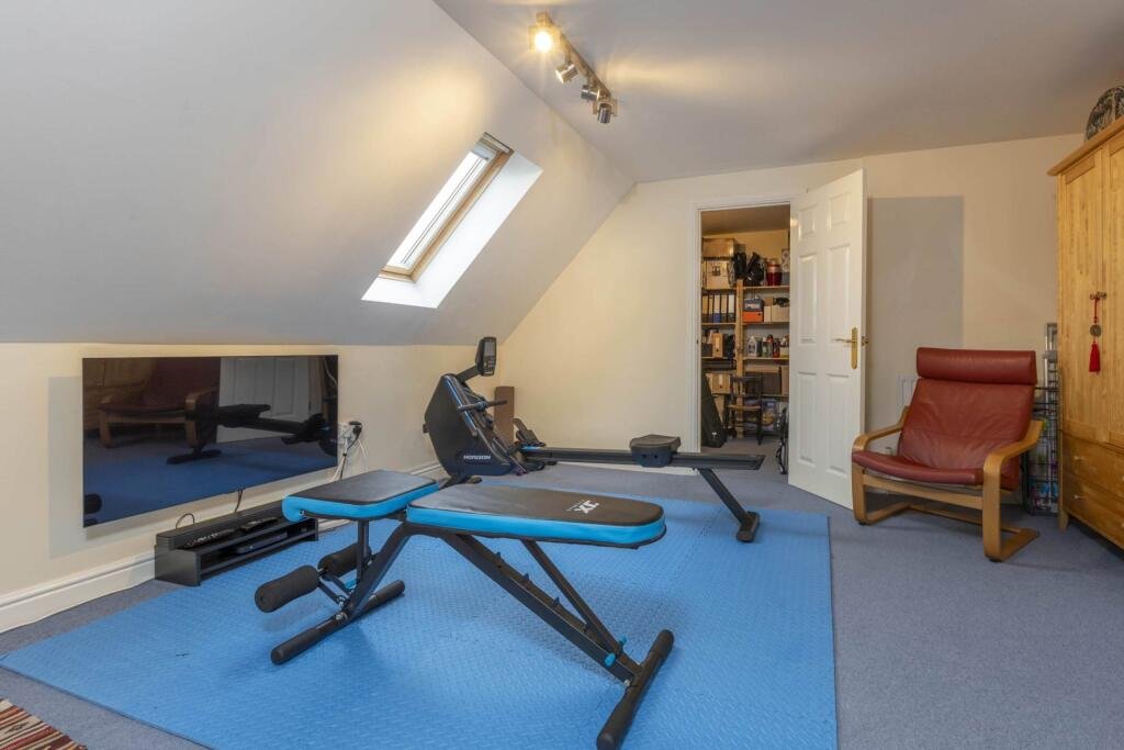 The second floor offers a further double bedroom, with very practical closed off storage space which could also be used as a walk-in closet. There is a further bedroom / study room as well as a family bathroom.