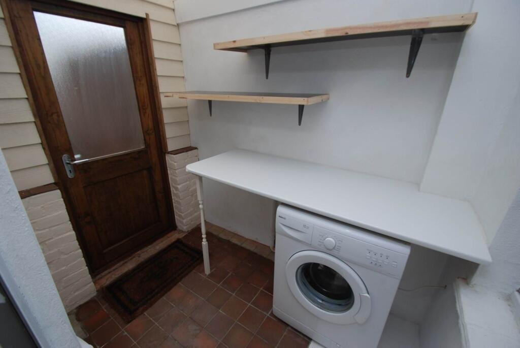 Utility room – 4’8″ (1.42m) x 7’2″ (2.18m)Door to garden, plumbing for washing machine and space for a freezer.