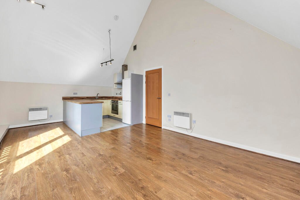 KITCHEN/LIVING ROOM Featuring an open plan layout with fitted kitchen units, including an integrated dishwasher, washer/dryer, fridge/freezer,