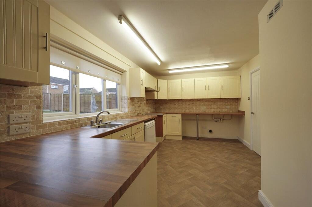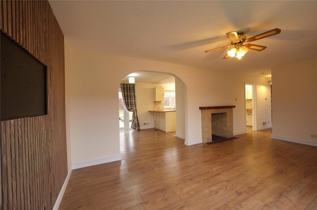 In more detail the accommodation comprises of:-ENTRANCE HALL:Understairs cupboard and door to rear. LOUNGE:Feature wall with space for wall hung TV, TV and tel points, feature brick fireplace and window to front.DINING AREA:Open to lounge and kitchen. Patio doors to garden.KITCHEN:Range of wall and base units with sink, freestanding dishwasher, spaces for oven, washing machine,dryer and double fridge freezer, window to rear.