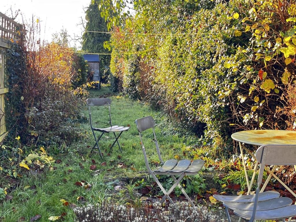 Outside – The garden is mainly laid to lawn with mature hedges and shrubs and a small patio area. A shed for storage is situated at the rear of the garden.