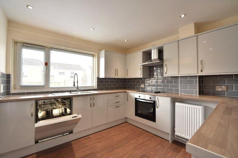 KITCHEN:Range of wall and base units with ceramic hob with extractor over, integrated dishwasher, space for washing machine and dryer and one and a half bowl sink with mixer taps.