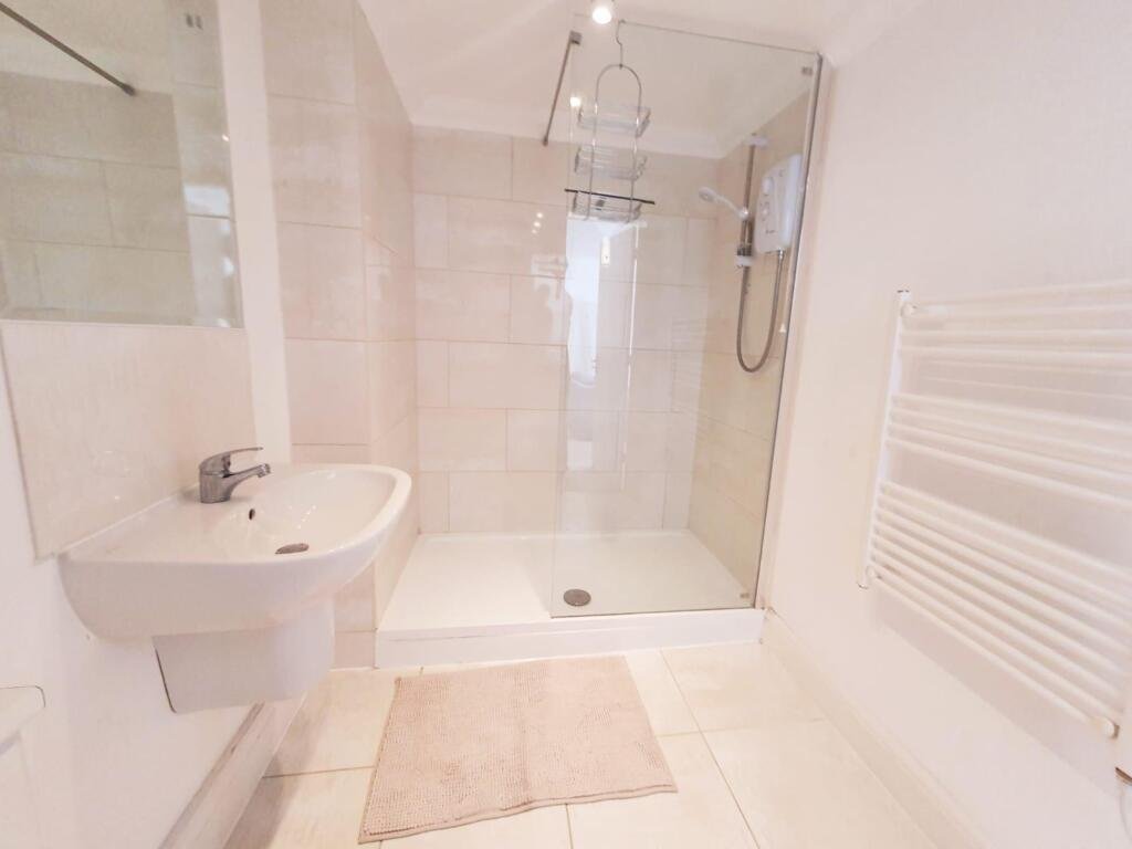 Shower Room Shower cubicle, radiator, extractor fan, wc, wash hand basin, fully tiled walls and tiled flooring.