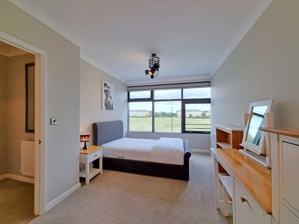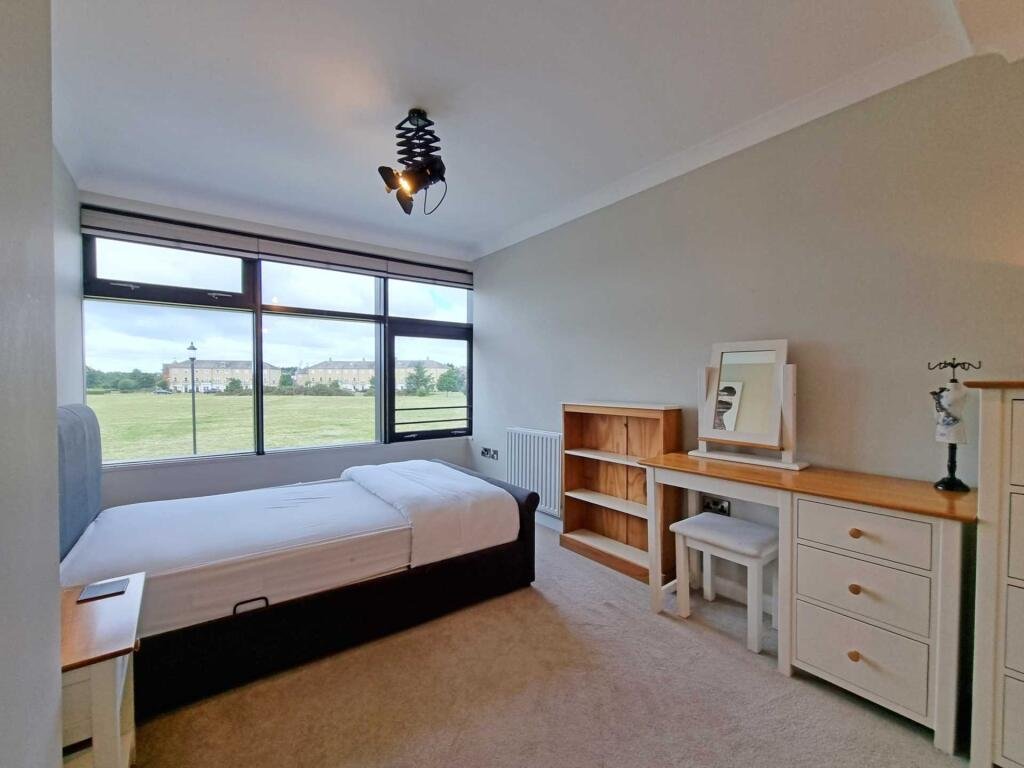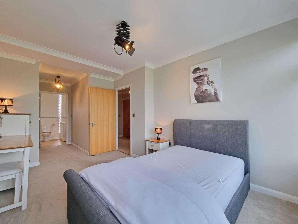 Large landing with built in storage as well as separate handy cupboards housing both the washing machine and tumble dryer. Both bedrooms lead off from here. Both bedrooms are fitted with complete bedroom suites including large built in wardrobes, and have stunning views overlooking the green. These windows are fitted with manual blinds for privacy whilst still allowing in plenty of natural light. Each bedroom has its own ensuite – the main bedroom ensuite is fitted with contemporary walk in shower and the second bedroom ensuite has a shower over a deep spa bath.