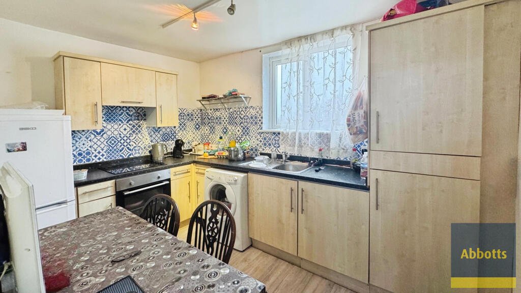 Completing the accomodation at the rear is the spacious and contemporary kitchen/diner which comprises ample base and wall units for storage with electric oven, gas hob, washing machine, and low level fridge. There is also space for a small dining table.
