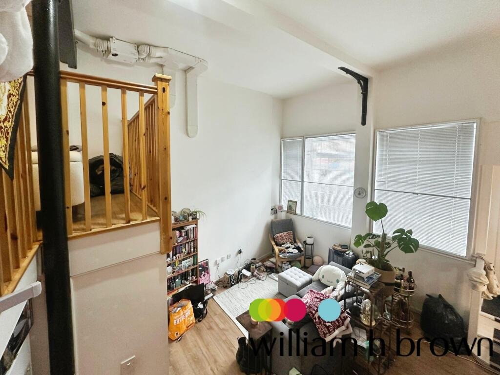 a mezzanine floor framed by the classic original beams. Allocated Parking and White goods included. Available March.