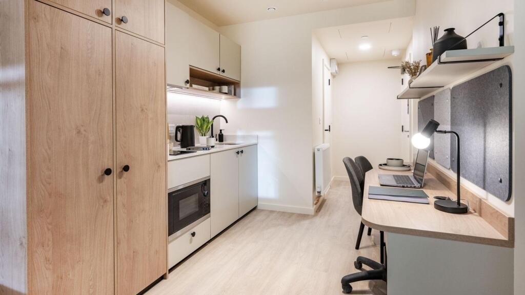 Classic Ensuite is furnished with a plush bed, ample storage, and a private en-suite bathroom. It serves as a personal sanctuary for rest and study, while the shared kitchen and dining area provide opportunities to socialise.
