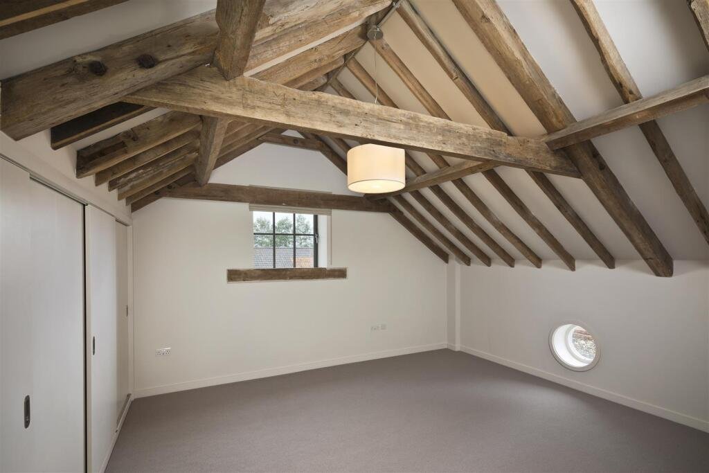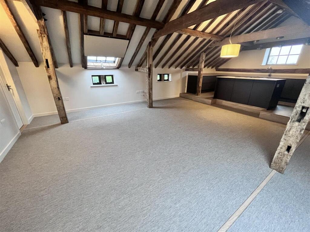 The open plan dining and living area also boasts a wealth of original impressive wall and ceiling timbers and outlook over the parkland and gardens of Friston Hall. TV point. Telephone point. Storage cupboard providing useful additional space and with exposed ceiling timbers.
