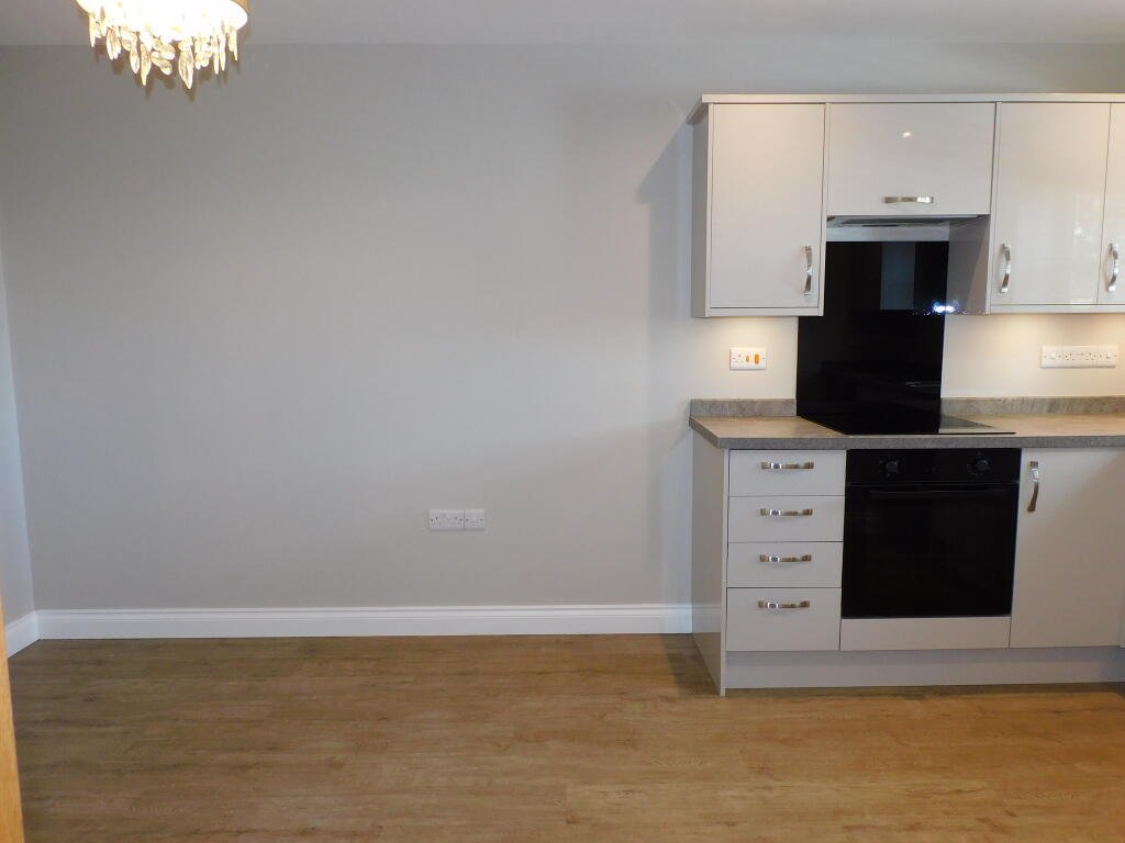 Fitted with a matching range of base and eye level units with worktop space over, 1+1/4 bowl sink unit with single drainer and mixer tap, integrated dishwasher, plumbing for automatic washing machine, space for fridge/freezer, fitted electric fan assisted oven, four ring halogen hob with extractor hood over, PVCu double glazed window to front, TV point, central heating thermostat with recessed ceiling spotlights.