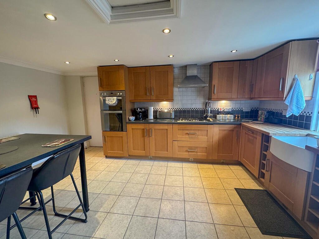 KITCHEN/BREAKFAST ROOM The modern kitchen/breakfast room features matching wall and base units, integrated double oven, hob, dishwasher, butler sink, and fridge/freezer. There’s also space for a breakfast table.Â