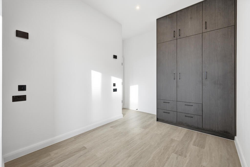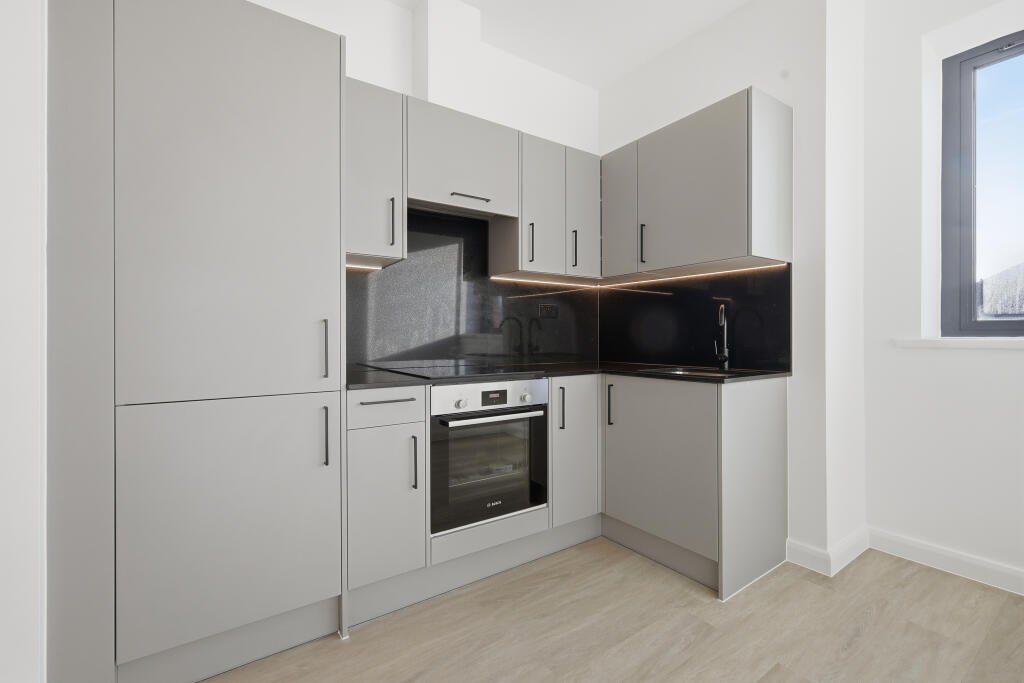 Created for modern living, the apartment offers a bright open-plan living space with a fully fitted kitchen and integrated Bosch appliances. The double bedroom includes a fitted wardrobe, and the bathroom is finished in a clean, contemporary style. With engineered timber flooring throughout, the property also benefits from a separate storage cupboard, intercom entry system, and off-street residents parking.