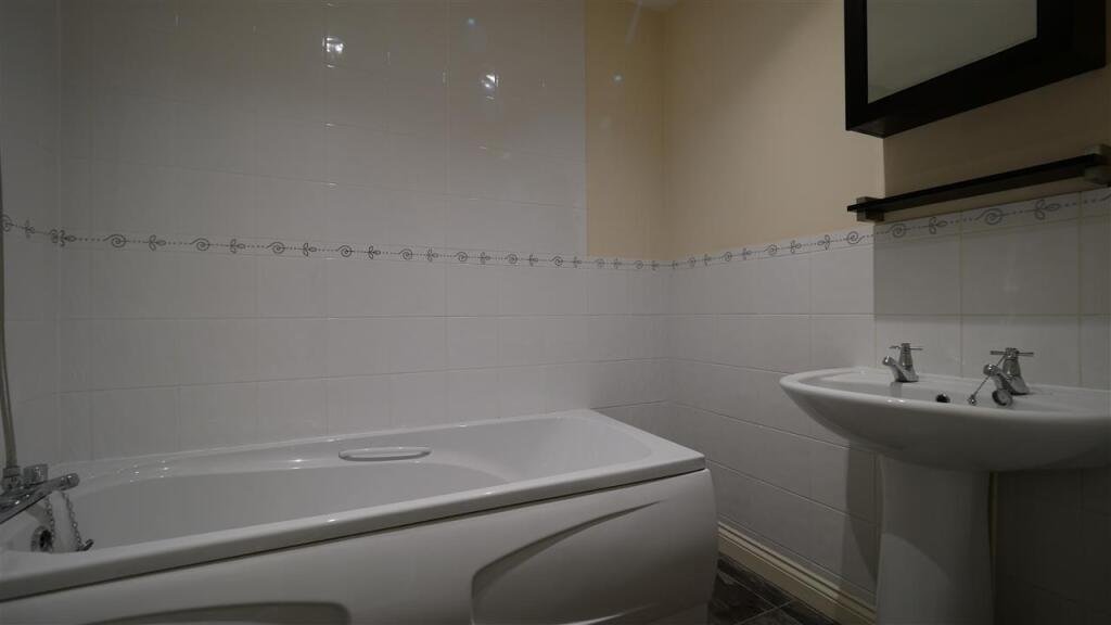 Bathroom 1.89m (6′ 2″) x 1.70m (5′ 7″)Three piece suite comprising wc, basin and bath with shower over