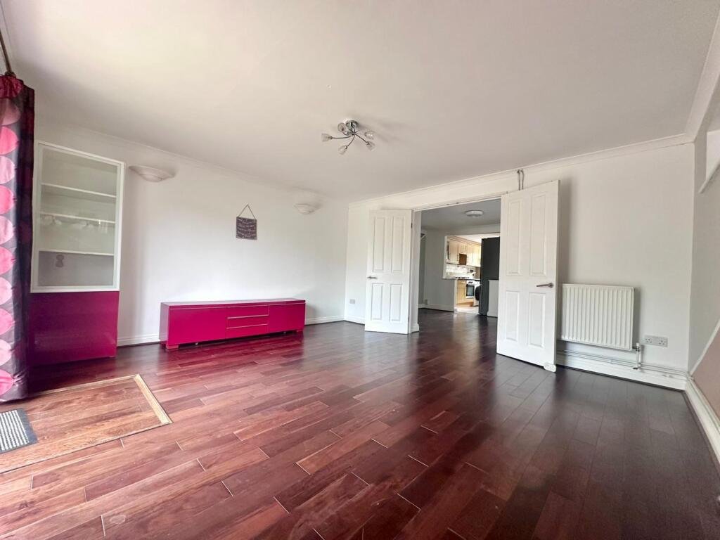Step inside to a welcoming entrance hall leading to a spacious open-plan living and dining area—ideal for entertaining or relaxing—with patio doors opening onto a private, enclosed rear garden featuring side access. The well-appointed kitchen comes complete with appliances and stylish wood-effect oak cabinetry, combining practicality with