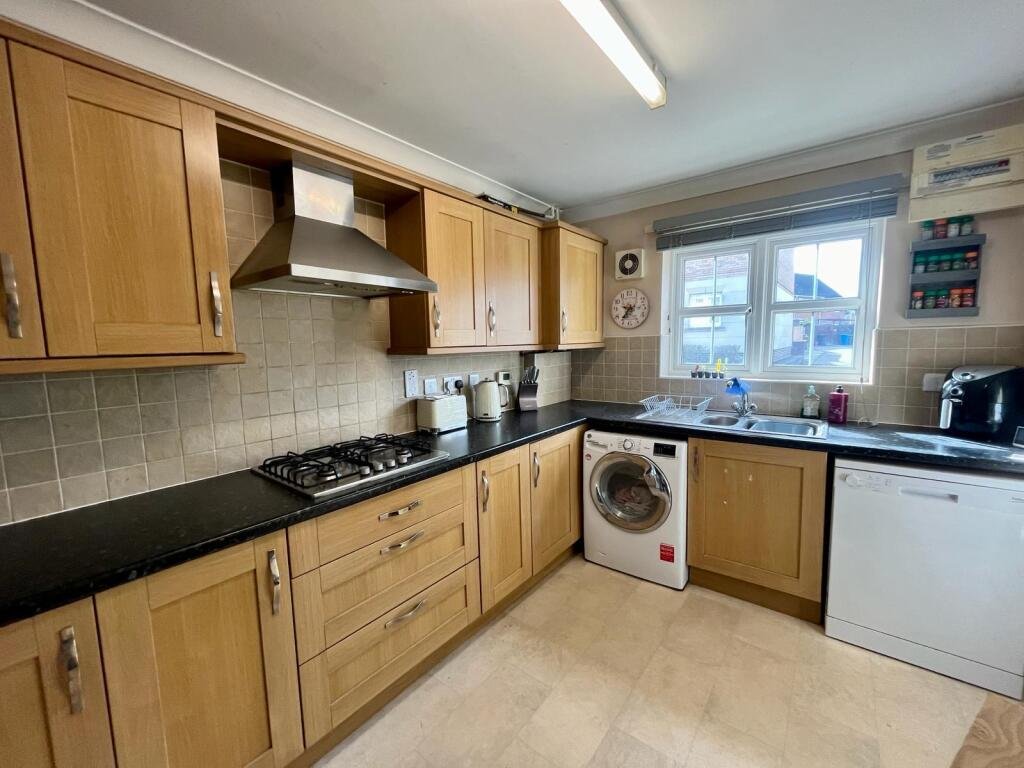 top space. Appliances include an eye-level double oven, gas hob and extractor fan. Space and plumbing facilities are available for a fridge-freezer, washing machine and dishwasher.