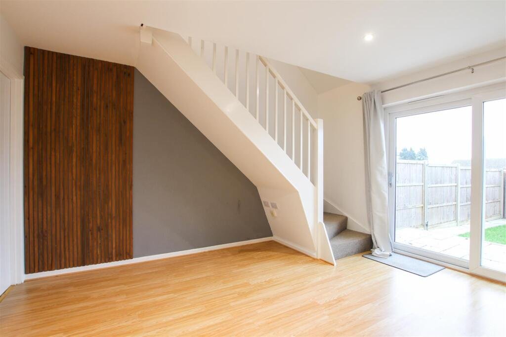 boiler, window to the front aspect. The sitting area has glazed sliding doors leading to the garden and stairs rising to the first floor.