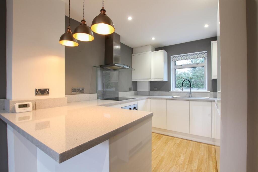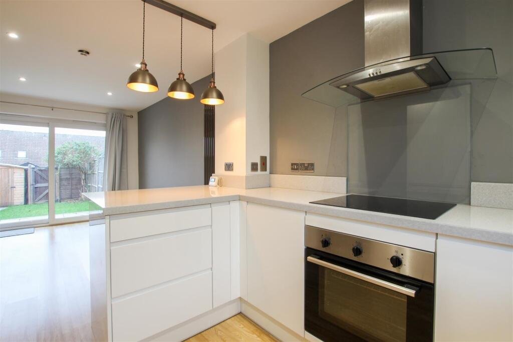 Kitchen/Sitting Room – Refitted kitchen with base and eye level units with worktop over, electric oven with induction hob and extractor above, stainless steel sink, slimline dishwasher, integrated fridge/freezer, washing machine, cupboard housing the gas fired combi