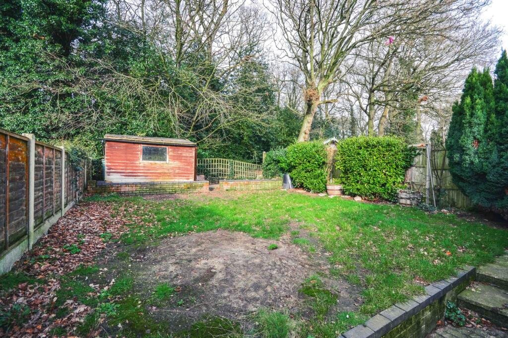 The property is approached via a driveway which provides parking for two vehicles leading to a single garage with electric supply. The private enclosed garden features a low maintenance lawn, dual patio areas, a timber structure storage shed and mature shrubbery.