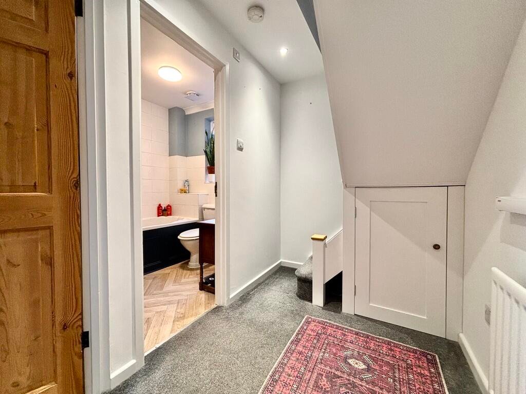Landing Carpeted, under stairs cupboard, double glazed side facing window, access to second floor, bathroom and bedroom.