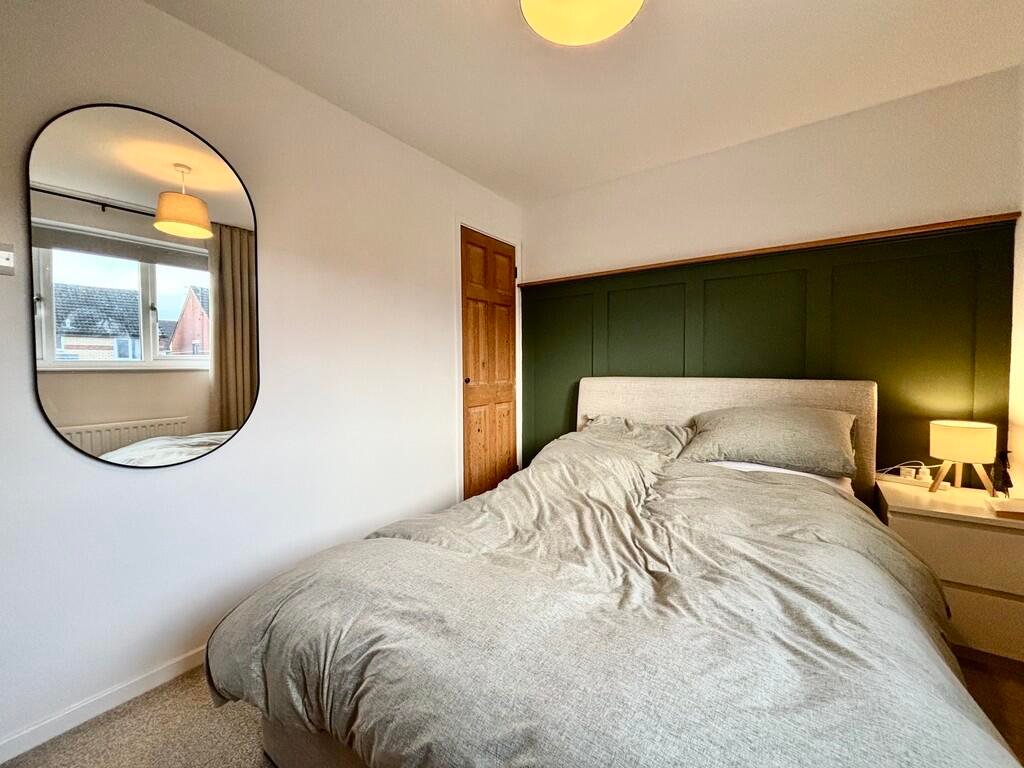 Bedroom Front facing bedroom, double glazed window, fitted storage cupboard over stairs, radiator.