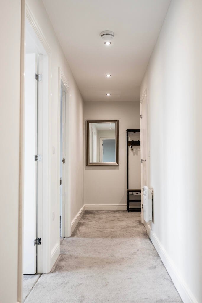 ENTRANCE HALL 4′ 6″ x 22′ 1″ (1.37m x 6.73m) Comprising fitted carpet, storage cupboard, entry phone, heater and doors to all rooms.