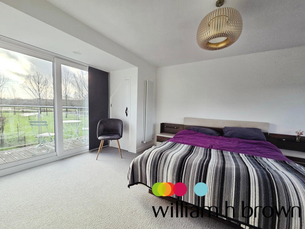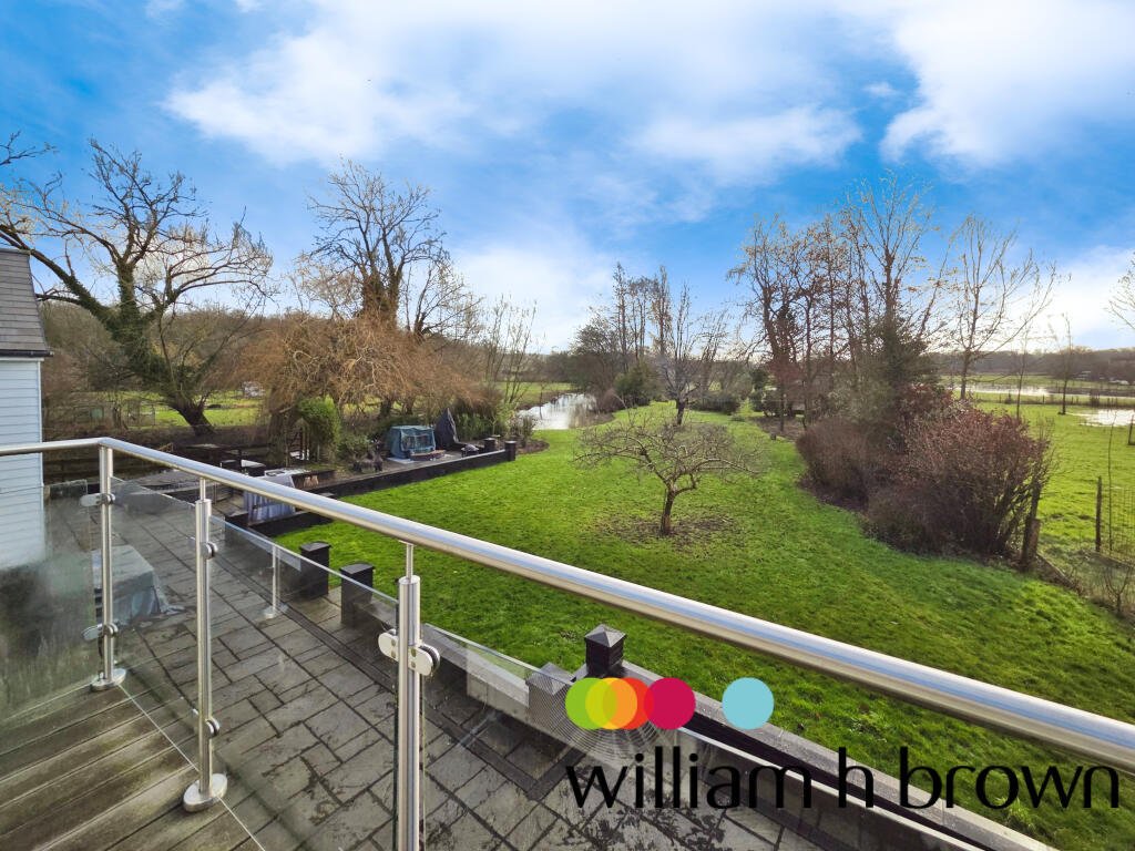To the first floor there are five bedrooms, four double bedrooms and one single bedroom. There are three ensuite bath rooms and a family bathroom with freestanding bath and separate shower room. The primary bedroom is a generous size with a Juliet balcony overlooking the Essex countryside.