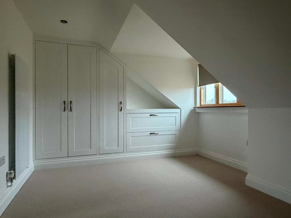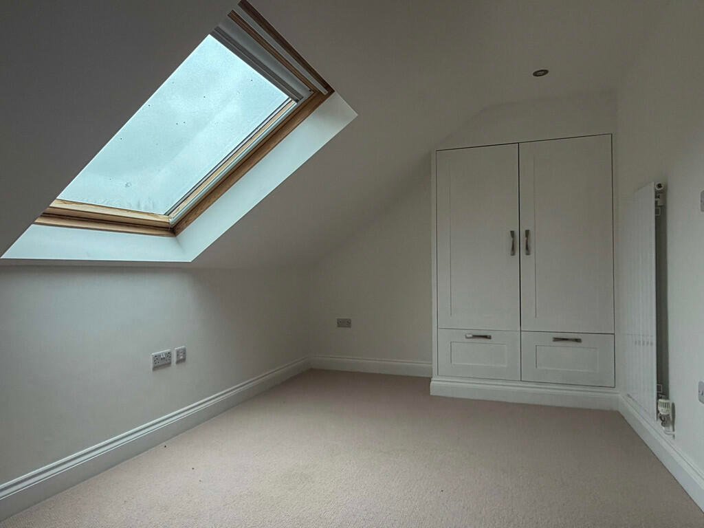 BEDROOM 4 A small double bedroom with a fitted wardrobe and drawers, with a velux window.