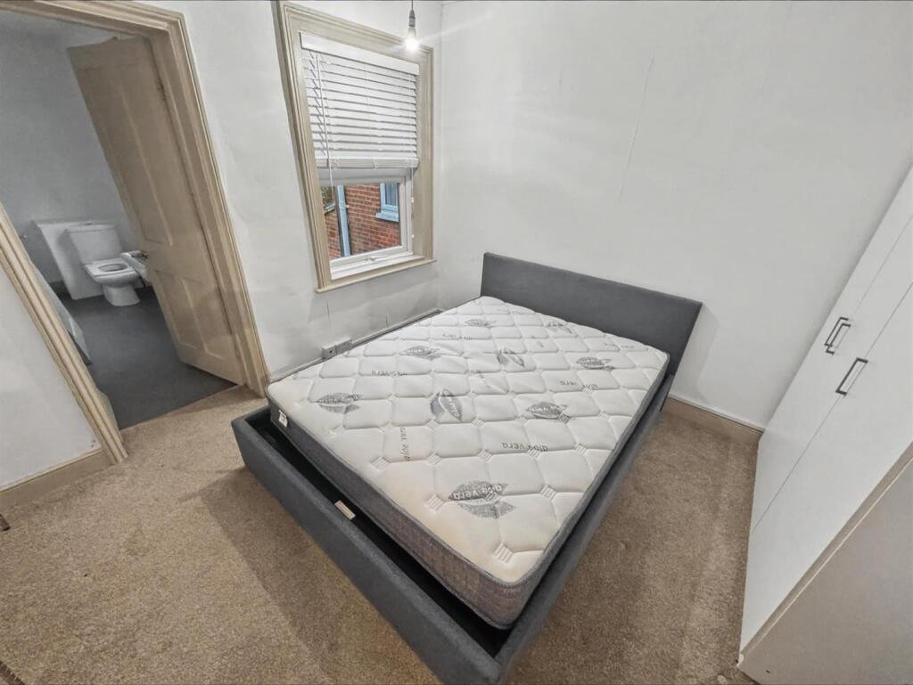 Bedroom 2 – 3.21 x 3.41 (10’6″ x 11’2″) – Large double bedroom, carpeted. Furnished with wardrobe and small drawer unit. Will be furnished with a bed.