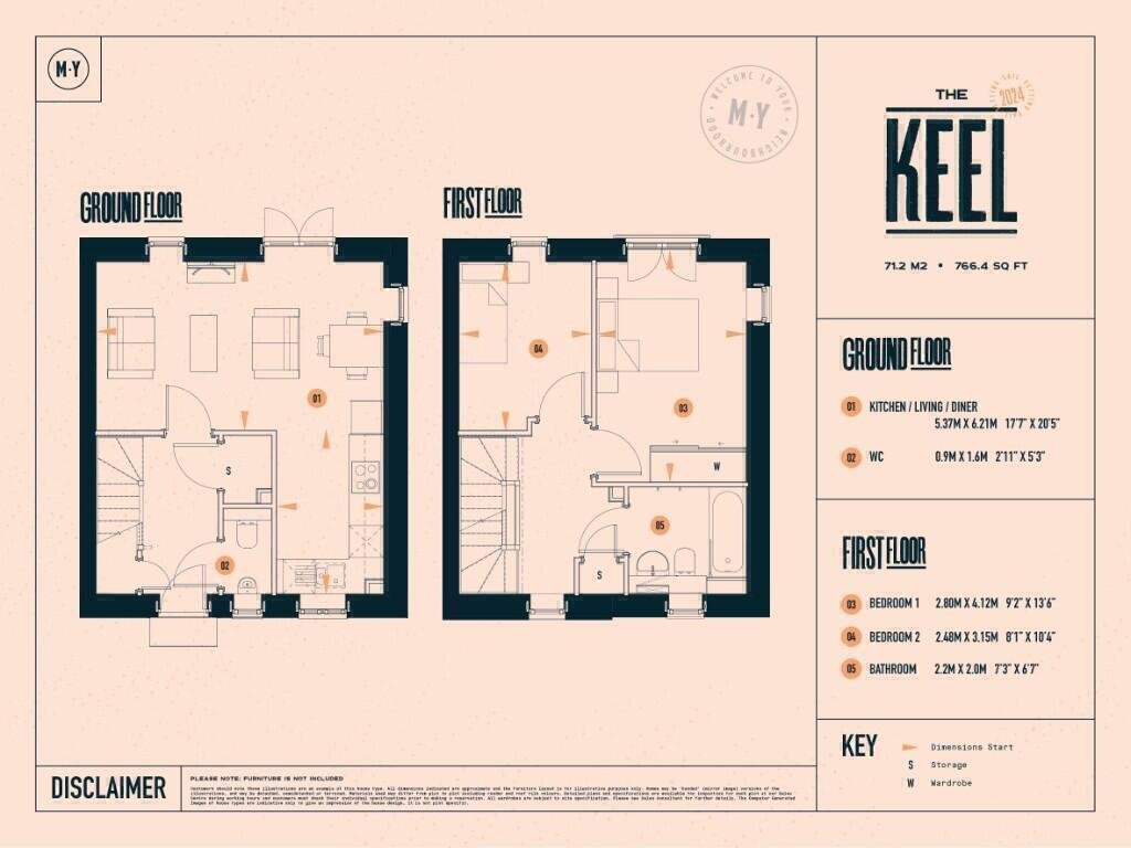 This home is called the Keel. On the ground floor you’ll see a spacious, light, kitchen / diner / lounge with high spec white goods, along with further storage, and a WC for convenience.