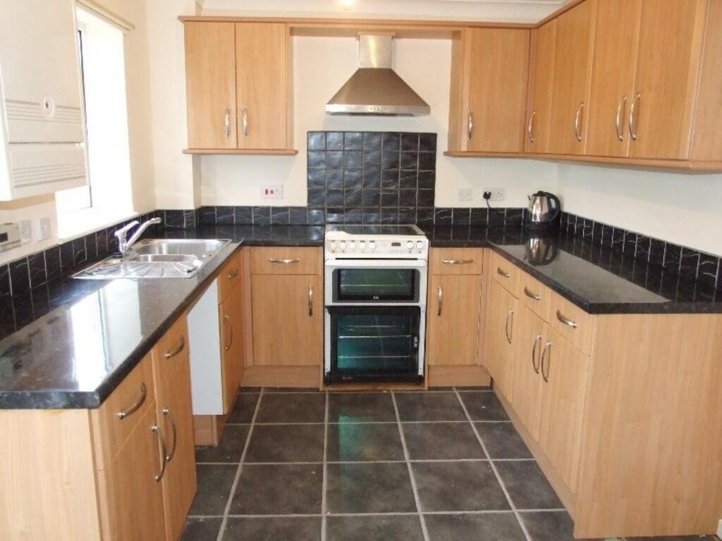 4.55m (14’11”) x 2.65m (8’8″) Fitted with a matching range of base and eye level units with worktop space over, 1½ bowl stainless steel sink with single drainer, plumbing for washing machine, built-in oven, four ring hob with extractor hood over, radiator, coving to ceiling, double glazed double doors to garden.Â