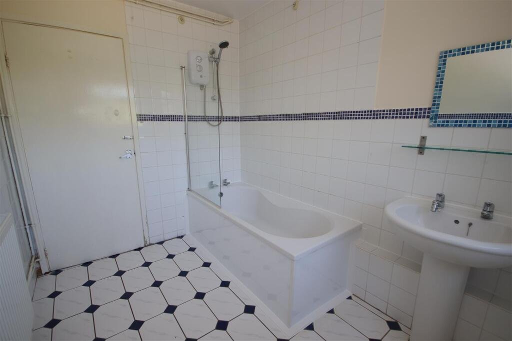 Bathroom – Spacious downstairs bathroom with electric shower over bath, WC and hand basin
