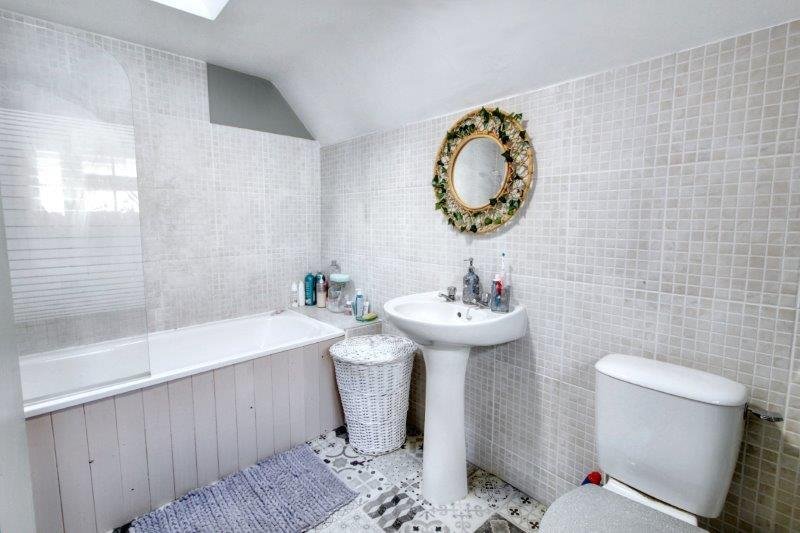 The property is offered unfurnished and offers entrance hall with stairs leading to studio room with exposed beams and sash window, fitted kitchen with built in oven and hob and modern bathroom with shower above bath.