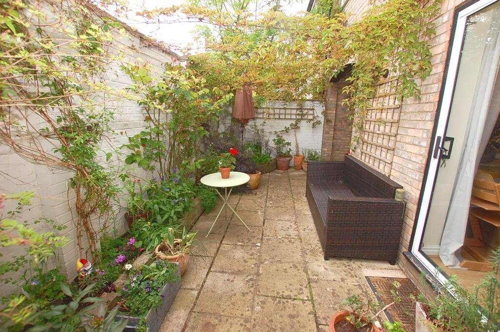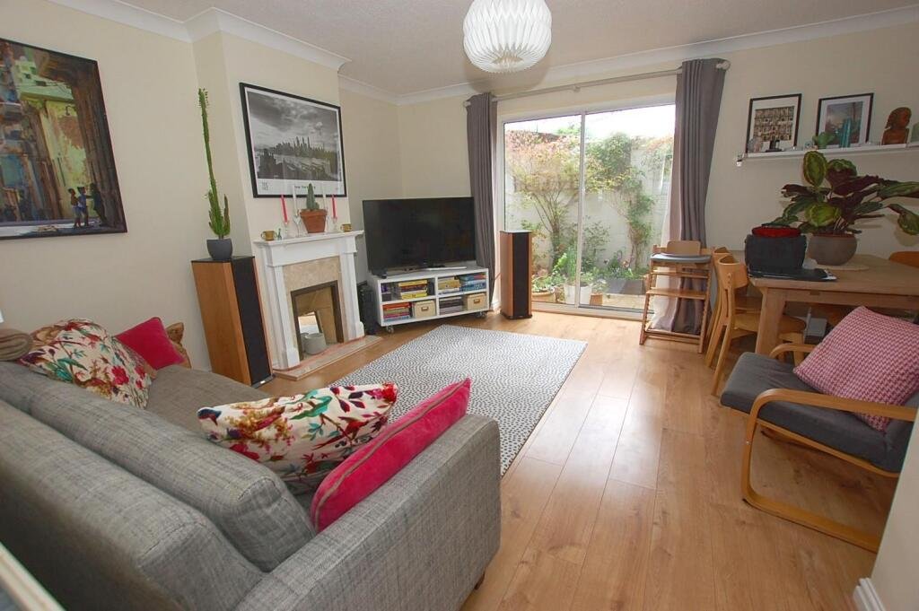 Lounge/Diner – 4.47m x 4.04m – A delightful room with direct access to the sunny rear courtyard. Laminate flooring, two radiators, feature fireplace, under stair cupboard and patio doors to garden.